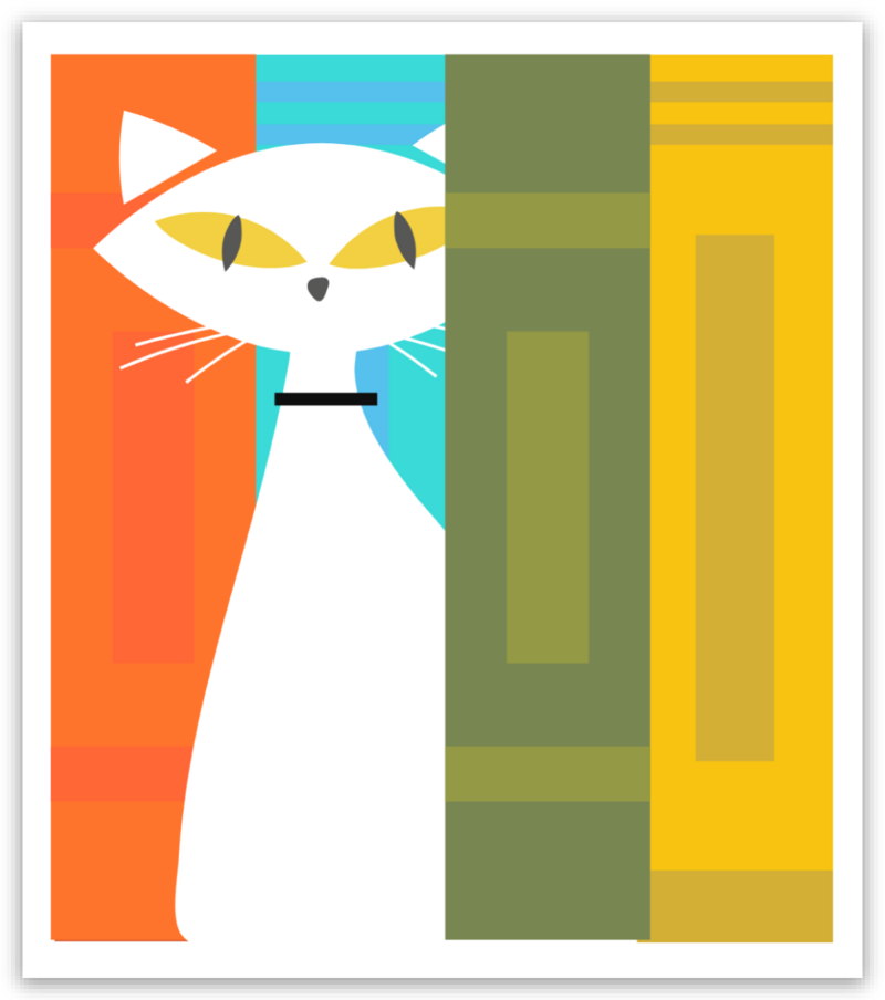 One super cute retro cat hiding in a book stack sticker designed by us!